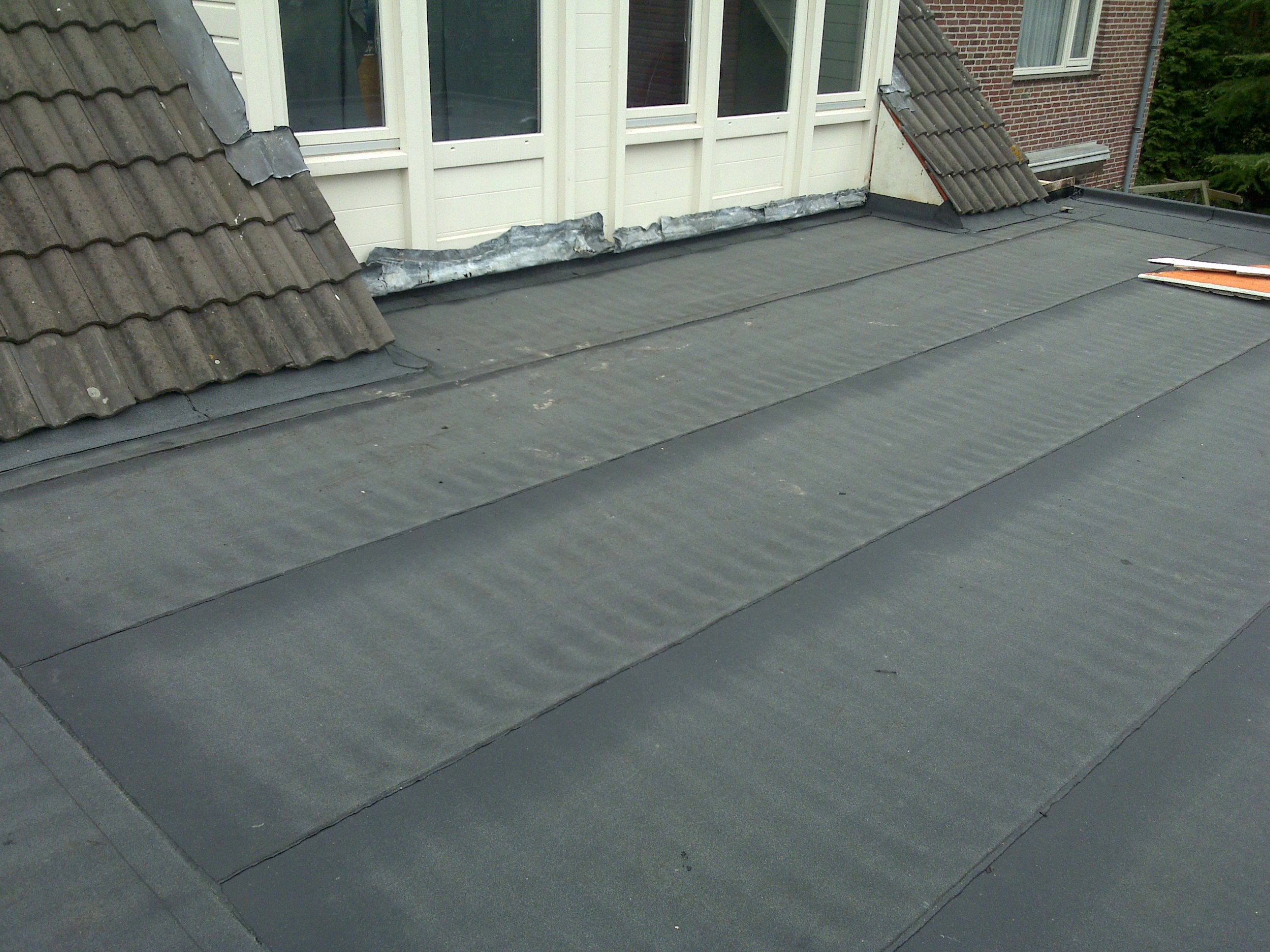nieuwe dak opbouw met bitumen op dakterras